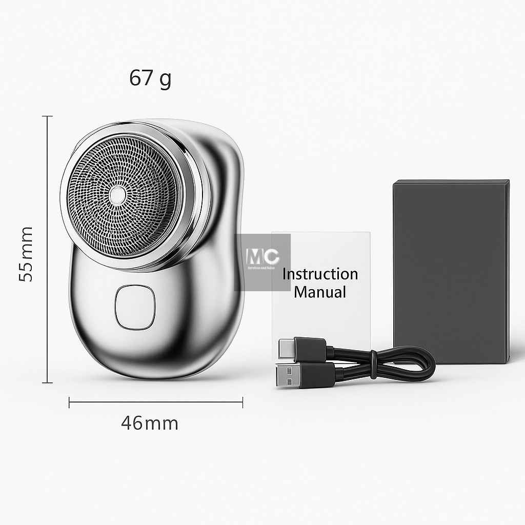 📦 Incluye: 1 mini afeitadora, 1 cable de carga USB-C, 1 manual de instrucciones y 1 caja de embalaje.