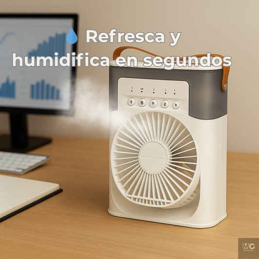 AirZen - Ventilador Portátil con Humidificador USB – Alivio inmediato del calor y aire seco en cualquier lugar.
